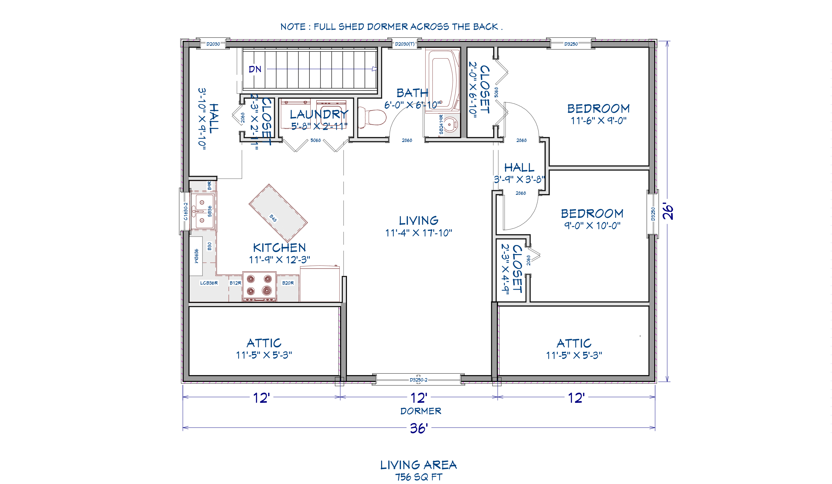 - 26’x36′ + 936 sq ft