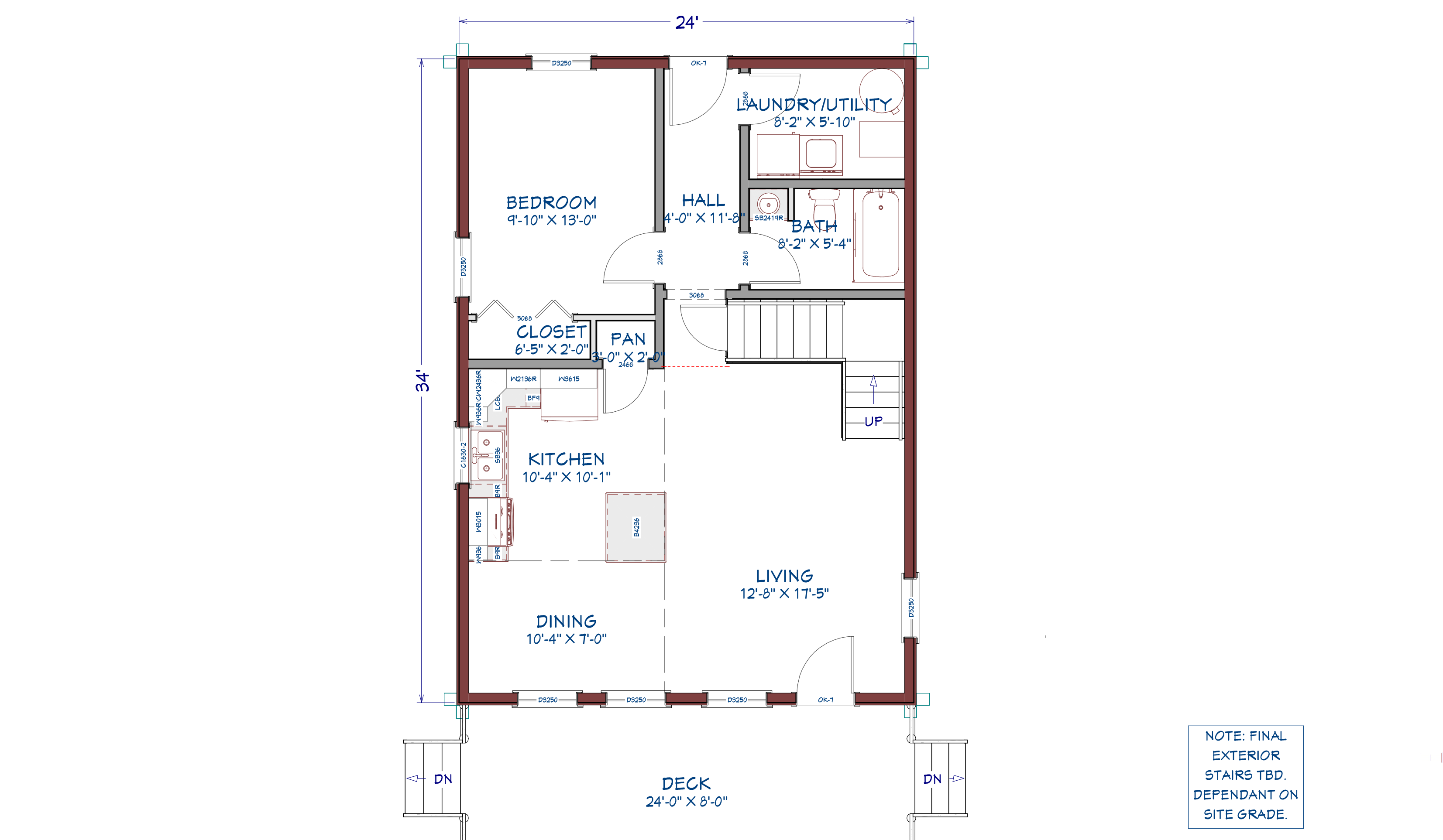 Designed for long, narrow lots or properties with restrictions, this floor plan optimizes all available space. This home boasts large windows for enjoying your view, all essentials on the main floor for ease of mobility, a loft for bonus space, a full front deck for entertaining, and an entrance from both the front and back of the house.